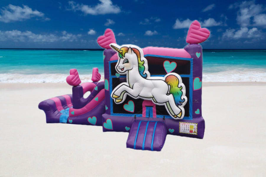 Do you believe in Unicorns? All of us a Four Seasons Rental in Newark New York do. Check out this new colorful eyecatching bouncer with slide. With a large bouncing area a slide that can be used wet or dry and a basketball hoop inside for added fun its sure to make your child's party magical. Four Seasons Rental offers delivery and set up of all combination style jumpers making your job as party planner a little easier. Combination style jumpers are able to be set up outside or inside providing there is adequate space and drainage if using water. Combination style jumpers are secured in the outside setting with multiple steel stakes driven deep into the ground, inside settings utilize sandbags ensuring a safe and fun environment for all guests. The blowers used to inflate these units run on standard 120-volt power making them useable at almost any back yard party or event. Four Seasons Rental is Conveniently located in Newark, New York and services all of Wayne, Monroe, Ontario, Seneca and Cayuga Counties.