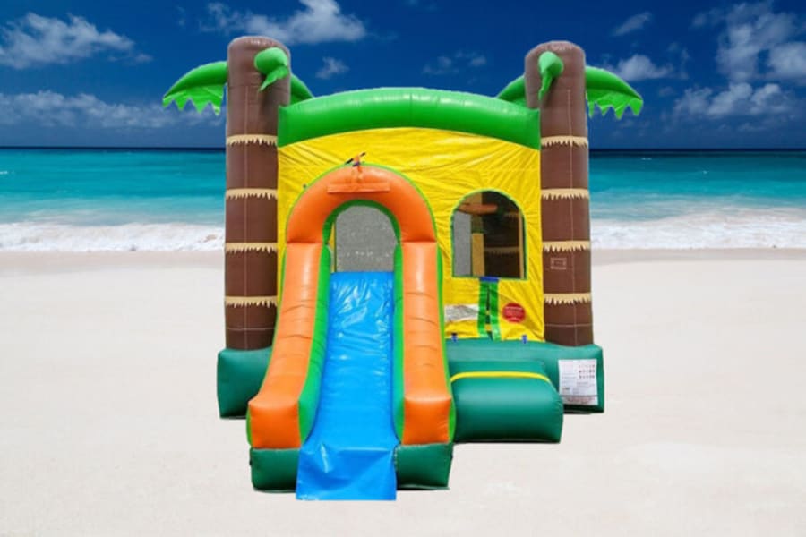 We call this the Mini tropical but its sure to be a hit at your party! The smaller size is great for indoor spaces and small yards and small enough you can pick this one up yourself. With a bouncing area and a slide that can be used wet or dry this Mini Tropical is great for all occasions. Combination style jumpers are able to be set up outside or inside providing there is adequate space and drainage if using water. Combination style jumpers are secured in the outside setting with multiple steel stakes driven deep into the ground, inside settings utilize sandbags ensuring a safe and fun environment for all guests. The blowers used to inflate these units run on standard 120-volt power making them useable at almost any back yard party or event. Four Seasons Rental is Conveniently located in Newark, New York and services all of Wayne, Monroe, Ontario, Seneca and Cayuga Counties.