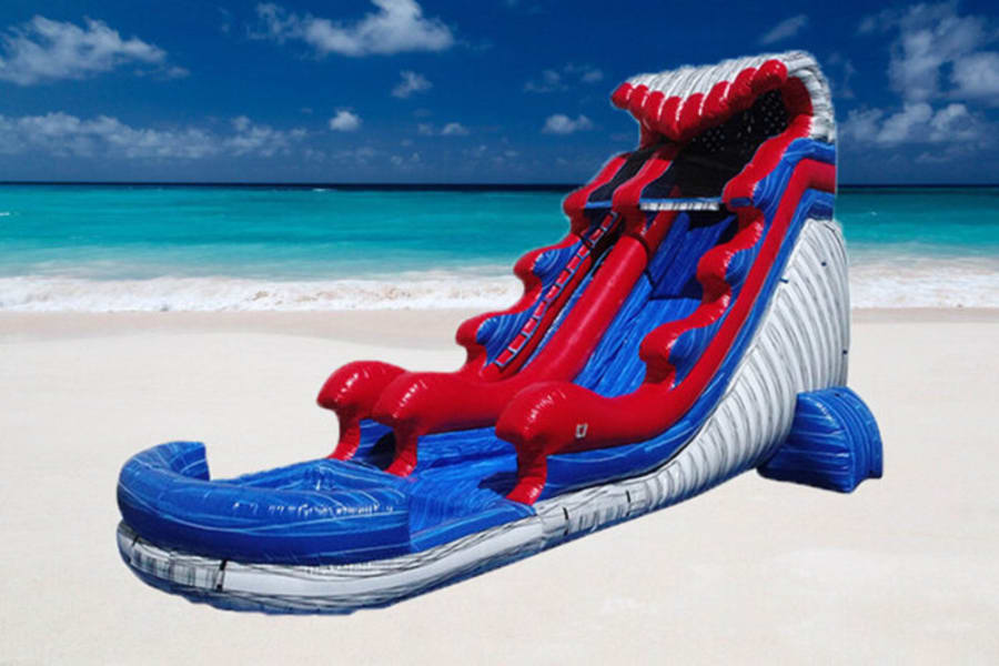 Check out this towering new slide coming in at 22' tall it's sure to make a splash at your next party! Four Seasons Rental located in Newark, New York has an evergrowing inventory of the best and largest inflatables around. You can rest assured that safety is a priority with the design of this huge slide as it features safety nets to ensure the safety of partiers. This slide can be used wet or dry depending on the availability of water. No special attachments are needed, a simple garden hose will do! Four Seasons Rental offers delivery and set up of all slides making your job as a party planner a little easier. Slides are able to be set up outside or inside providing there is adequate space and drainage if using water. Slides are secured in the outside setting with multiple steel stakes driven deep into the ground, inside settings utilize sandbags ensuring a safe and fun environment for all guests. The blowers used to inflate the slides run on standard 120-volt power making them usable at almost any backyard party or event. Four Seasons Rental is Conveniently located in Newark, New York, and services all of Wayne, Monroe, Ontario, Seneca, and Cayuga Counties.